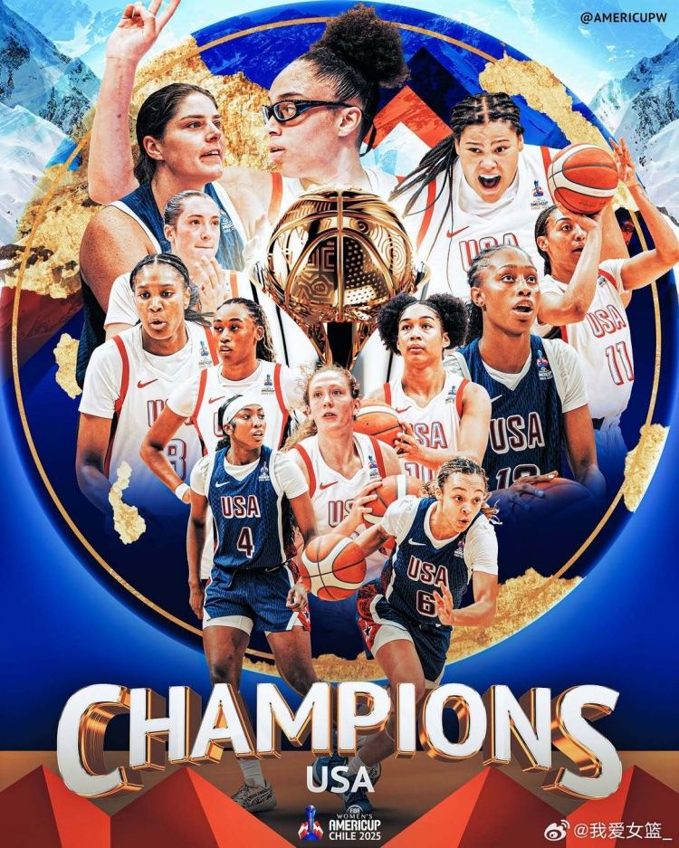 【女篮美洲杯:无WNBA球员参加的美国女篮夺冠】北京时间今天上午,2025年女篮美洲杯进行了决赛的较量,美国女篮在第三节还一度落后7分的情况下奋起直追,最终以92-84,8分的优势击败巴西女篮,队史第五次捧得美洲杯冠军,从而也直接获得明年女篮世界杯的参赛资格。