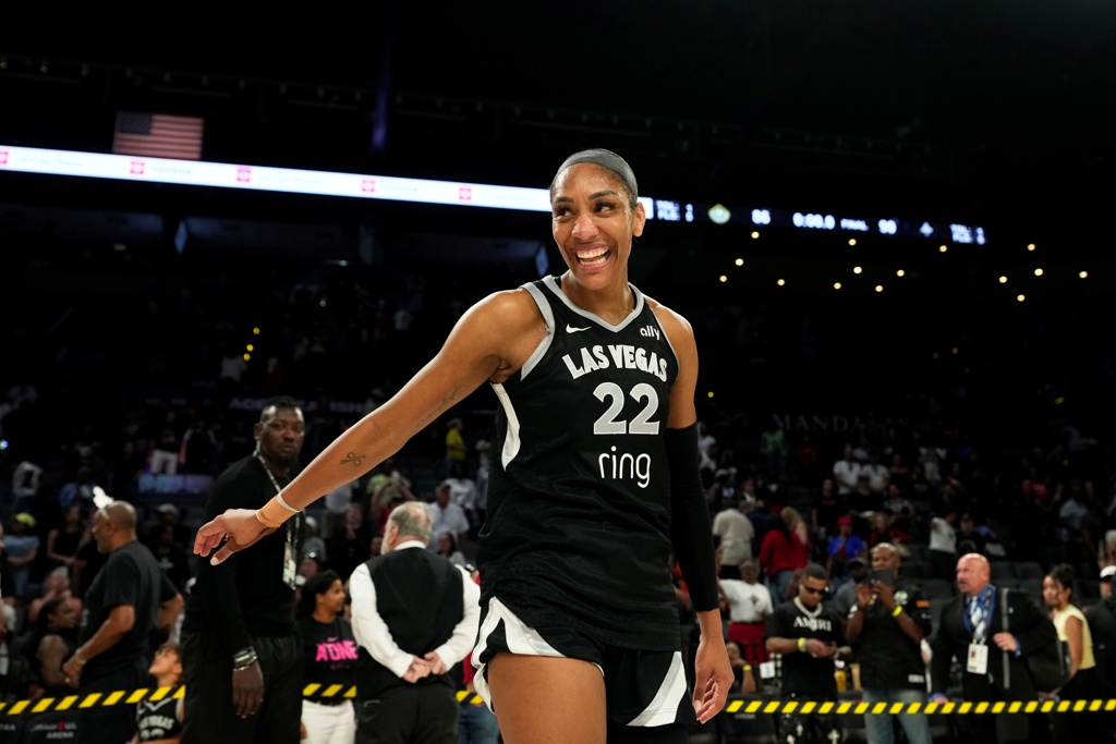 此役,王牌球星阿贾-威尔逊在41分钟的时间里,投篮27中13,三分球1中1,罚球10中8,狂砍35分8篮板5助攻4抢断4盖帽的数据,正负值+12。