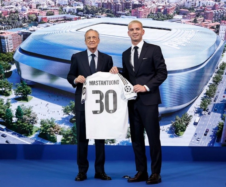 8月16日讯 阿根廷中场马斯坦托诺在皇马正式亮相,他身披30号球衣。