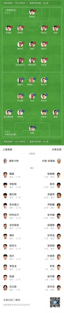09月12日讯 北京时间18:00,中超第24轮,上海海港主场对阵云南玉昆。赛前,双方首发出炉。
